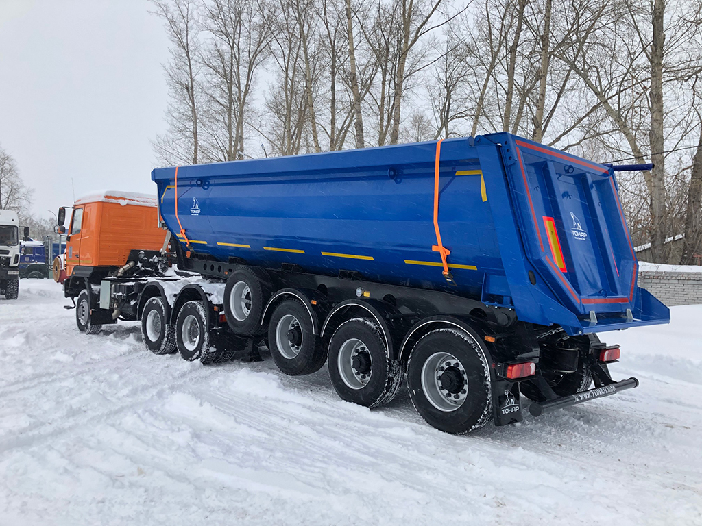 - Полуприцеп-самосвал Тонар-952345 4-х осный, облегченный, объем 30 кубов, собственный вес 7900 кг.
